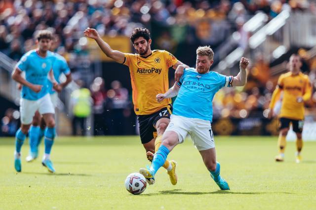 过去两次做客莫利纽克斯,曼城不仅总是能保证3分落袋,还至少打入3球。下半时的球队虽然有意收着踢,然而在格外放松的节奏下,他们又一次以流畅的连续踢墙二过一,将对方防线肢解。这次轮到哈兰德拉到禁区外吸引火力,之前做轴的福登变成破门者,为两人连线的仍是德布劳内。本赛季德布劳内已助攻6次,并创造25次机会,两项数据仍毫无悬念地领跑英超。